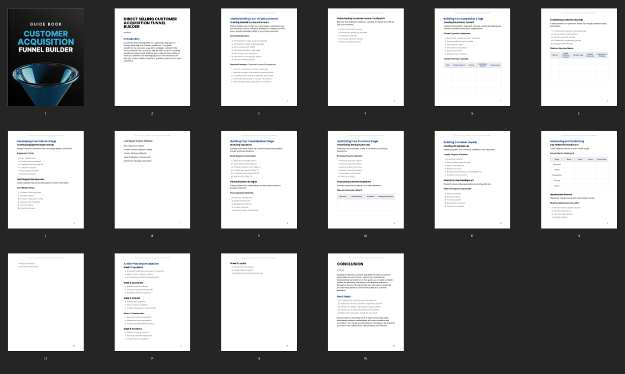 This practical guide empowers individuals and teams to design and implement a comprehensive customer acquisition funnel specifically tailored to direct selling. It provides clear, actionable strategies for each funnel stage—from initial awareness to conversion and ongoing loyalty—helping build a dependable system for attracting prospects, closing sales, and fostering long-term engagement.