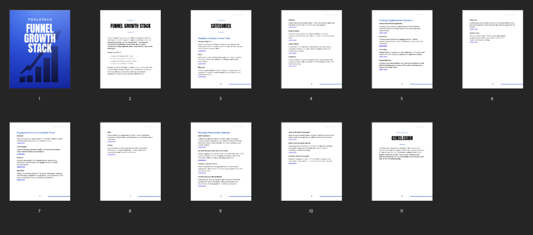 This toolstack is built to support marketing professionals, growth teams, and digital strategists in optimizing performance and enhancing customer interactions at every stage of the funnel. Whether refining existing processes or implementing new campaigns, these tools help foster sustained growth and deeper audience connection through a structured, data-informed approach.