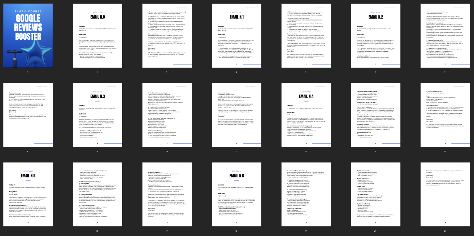 This Nexora email course provides a structured, actionable system to help users generate more positive Google Reviews, enhance customer trust, and develop a strong online reputation. It guides participants through proven review strategies that encourage authentic feedback and foster long-term relationships.