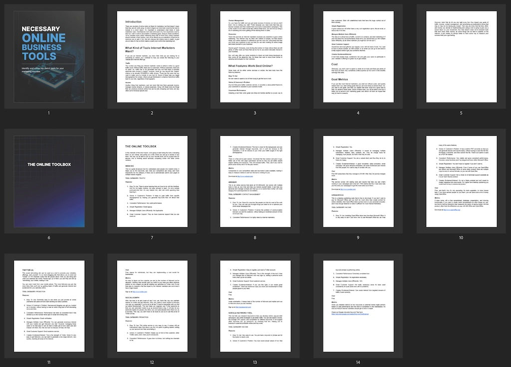 This ebook serves as a valuable self-training tool designed to help users discover and integrate the best online business tools for sustainable growth and operational success.