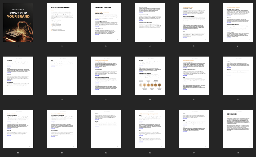Brand development is a continuous journey. This toolkit equips users with strategic, clear, and practical resources to build a brand that evolves and expands alongside their business. It serves as a comprehensive guide for turning ideas into a cohesive, resilient brand capable of sustained growth.
