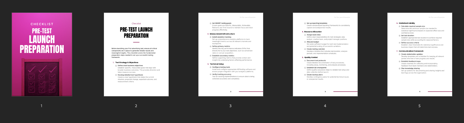 This checklist is designed to support individuals and teams in confidently preparing and executing ad tests that generate precise and actionable insights. It offers a structured approach to the preparation phase, ensuring comprehensive planning and optimal setup for successful campaigns.