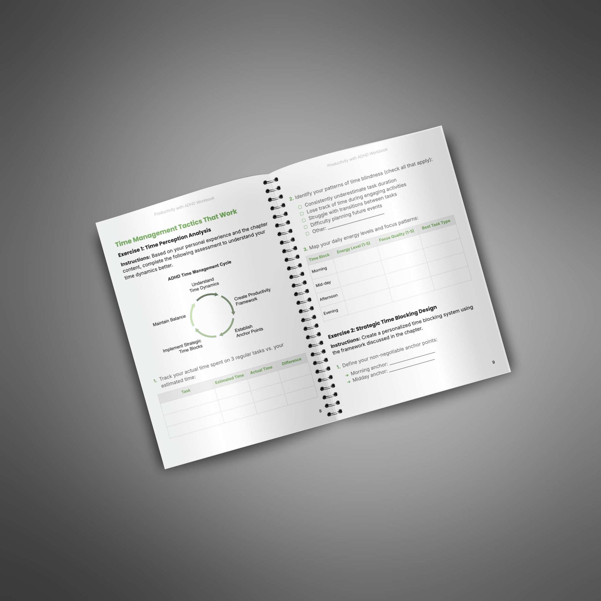 - Interactive Exercises: Targeted activities to address time blindness, disorganization, and task initiation difficulties.