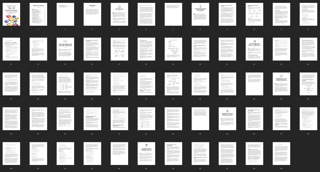 This comprehensive ebook provides a detailed exploration of the 5S methodology, designed to help individuals and teams streamline their work environments, reduce inefficiencies, and improve daily productivity. Offering clear and practical steps, the guide supports the development of effective organizational systems that foster consistency and operational excellence.