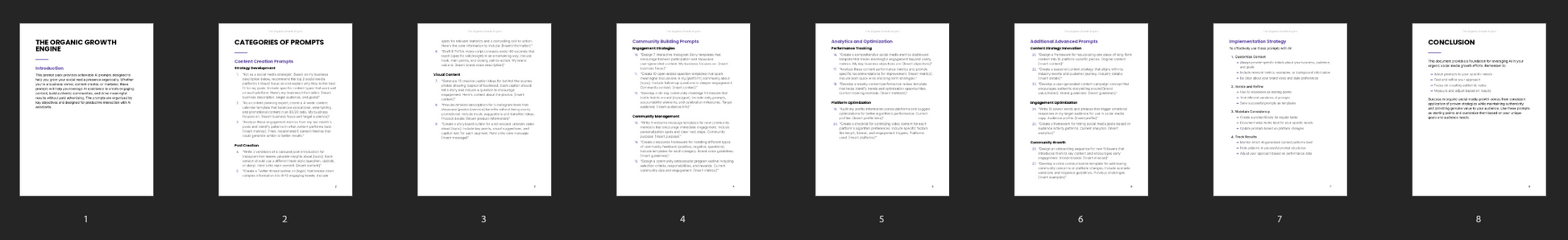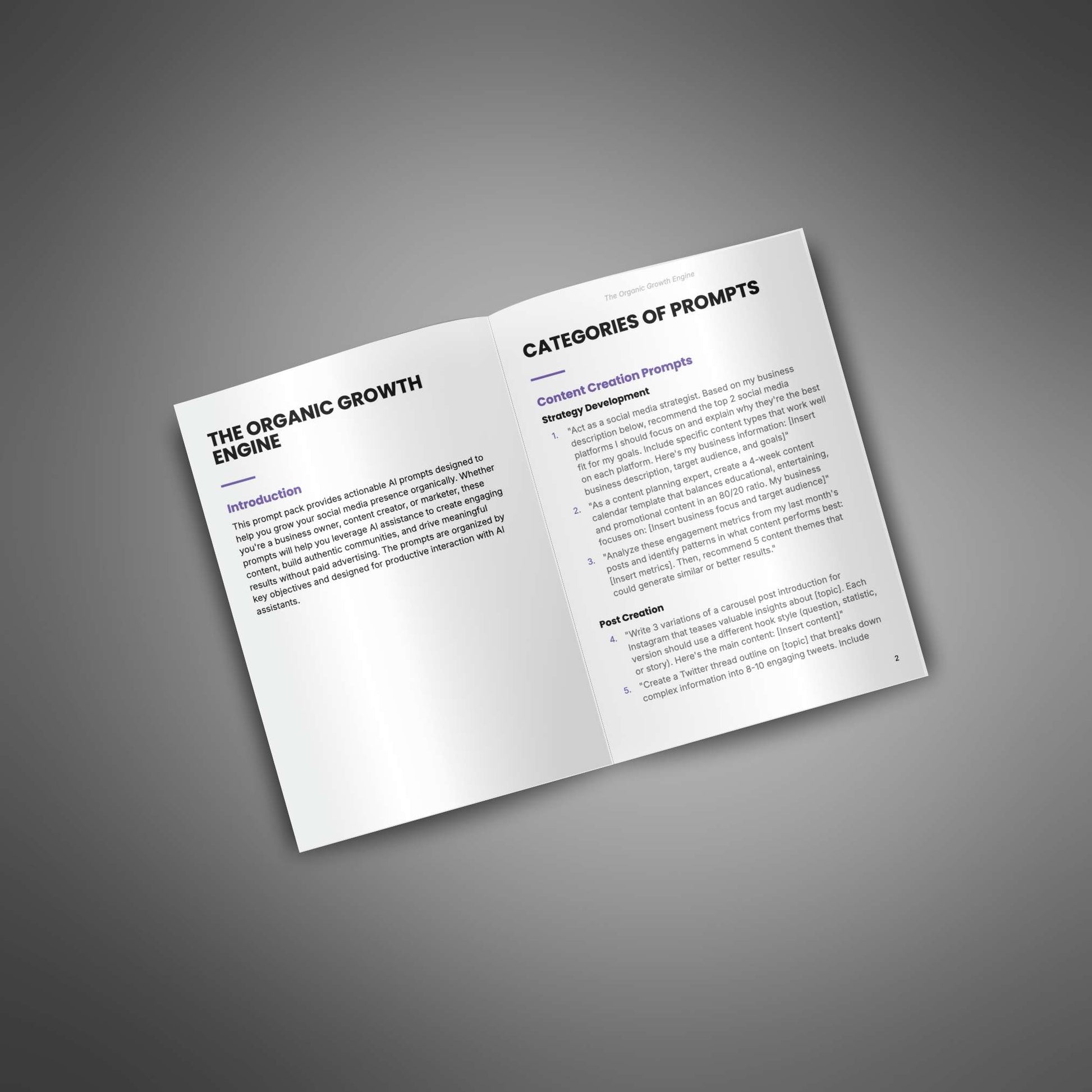 This prompt pack is designed to support self-directed growth and skill development in managing social media presence organically. Leveraging AI-driven prompts, it guides users through planning effective content strategies, creating engaging posts, nurturing active communities, and analyzing performance to foster ongoing improvement.