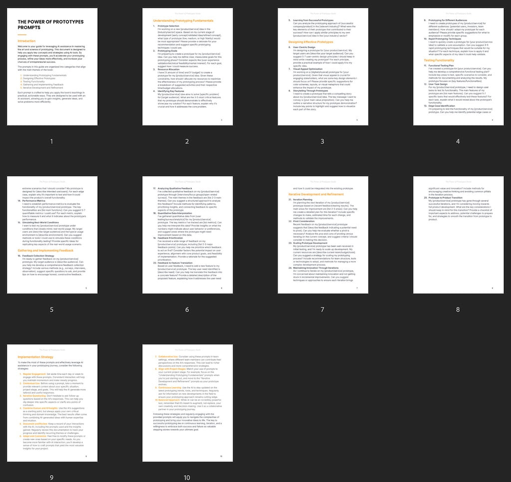 This AI-powered prompt pack is developed to support Nexora users in effectively creating and refining prototypes with precision and confidence. It provides carefully crafted prompts that guide individuals through each phase of the prototyping journey—from selecting the appropriate prototype type to conducting tests, gathering user feedback, and iterating designs—enabling a clear and structured path toward product development.