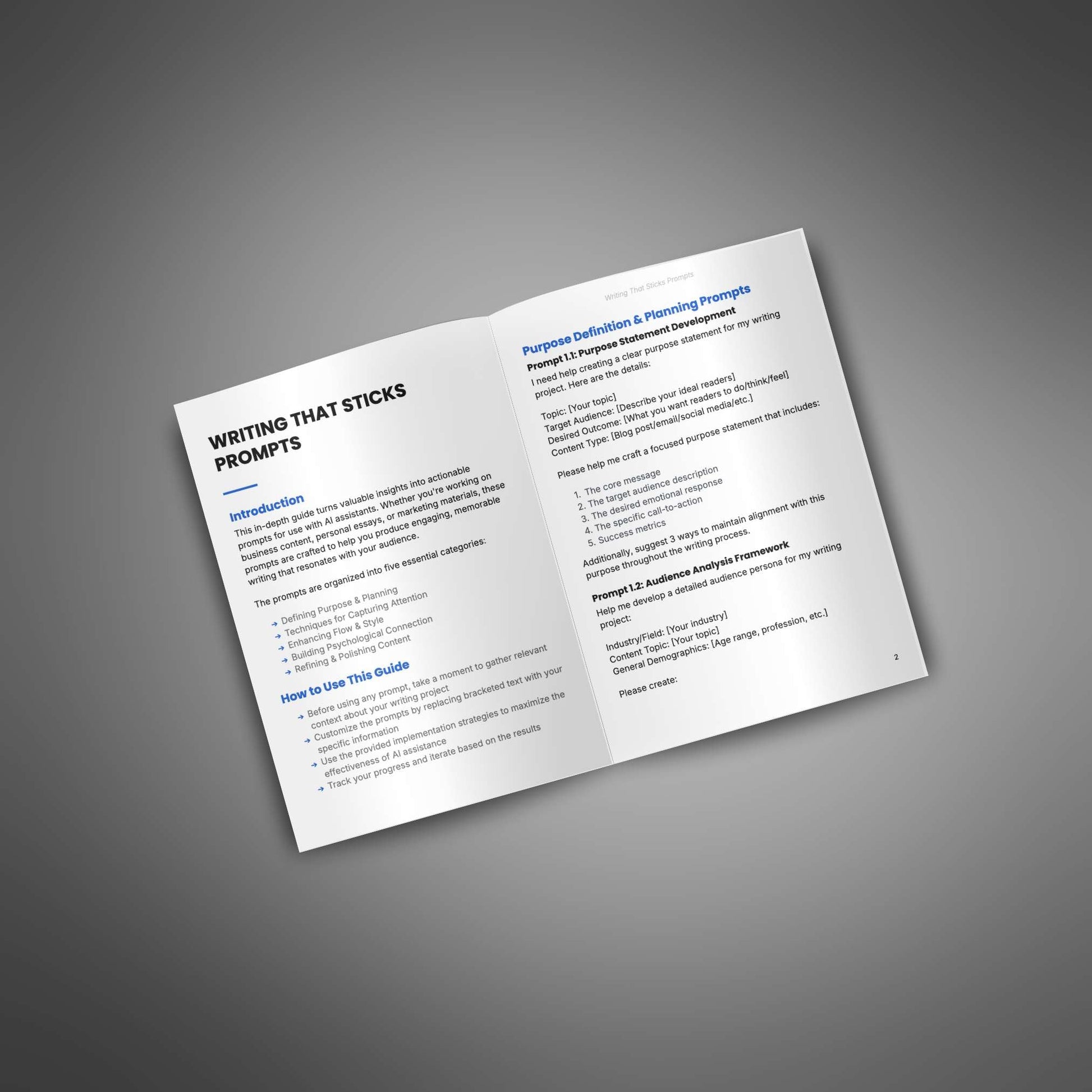This prompt pack is designed to assist users in developing engaging and purposeful writing through the use of AI tools. It offers a structured sequence of prompts that guide individuals in defining their message, capturing reader interest, and refining their style for clarity and effectiveness.